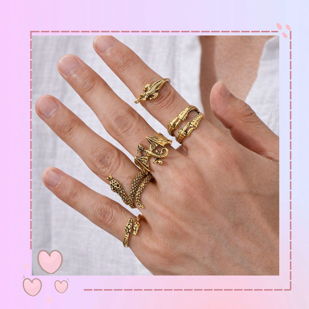set de 5 anillos dorados